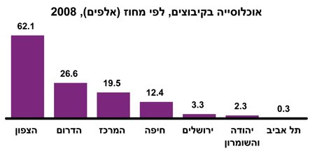בשנת 2008 היה הגיל החציוני של האוכלוסייה בקיבוצים (שמרביתה אוכלוסייה יהודית) 31 שנה,