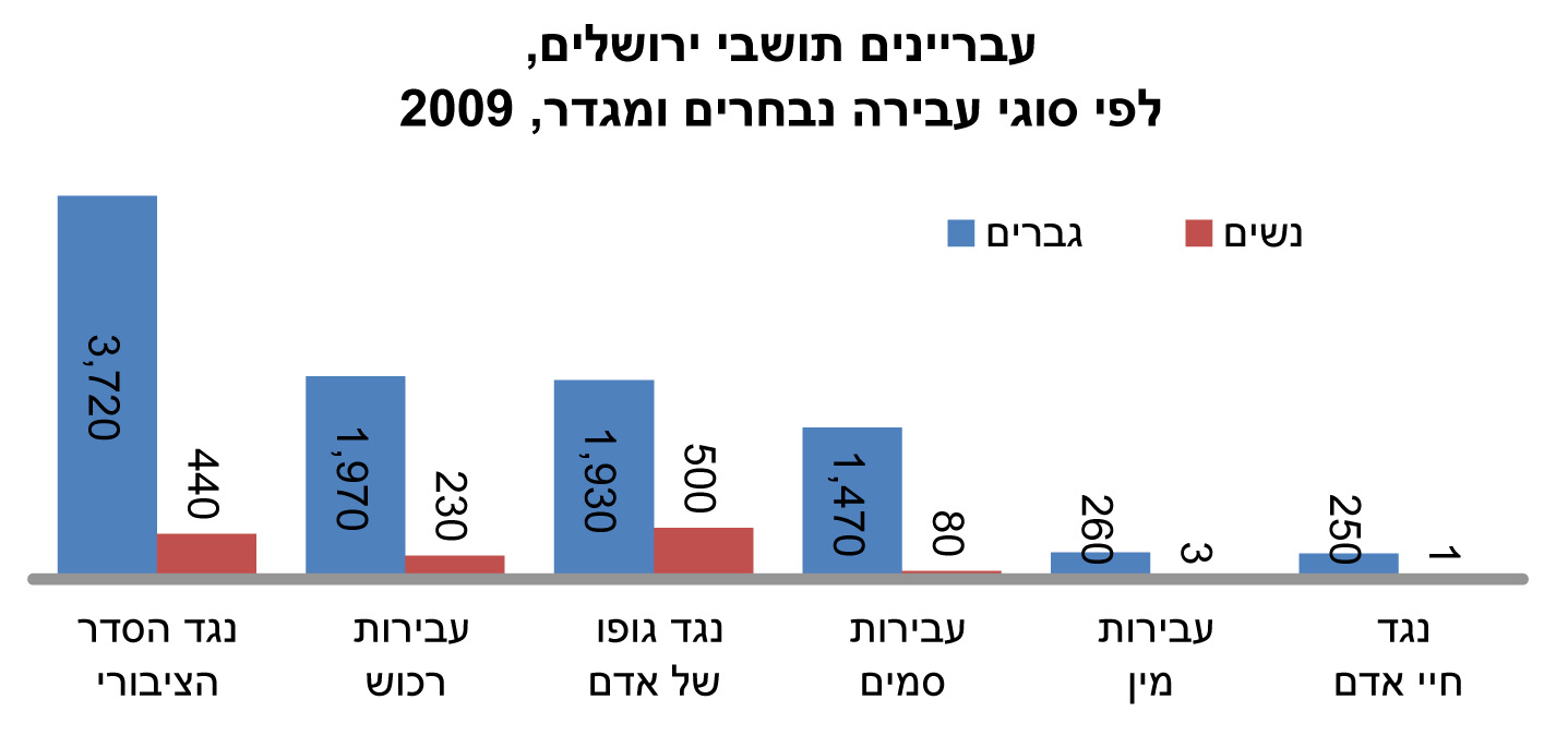 מקורות: משטרת ישראל: לשכת הדובר, השנתון הסטטיסטי של משטרת ישראל, 2009.