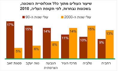 מקור: הודעה לעיתונות "עולים 2011", הלשכה המרכזית לסטטיסטיקה והשנתון הסטטיסטי לירושלים 2012 של מכון ירושלים לחקר ישראל