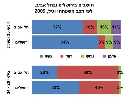 הרבה אנשים מעדיפים לחכות כיום עם חתונות ולא להתחתן כבר מגיל 18, לכן ממצא המתחתנים בעיקר בתל אביב יהיה נמוך מירושלים שכאמור אצלינו (כולל אנוכי) מתחתנים עד גיל 24. ולא 30 כמו בת"א.