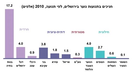 "אם יש עוד מקום שמדברים בו על אזרח טוב ולא על אזרח מצליח בלבד, הרי זה בתנועות נוער. אם יש עוד מקום שמדגישים בו קולקטיביות ולא רק אינדיבידואליות-אגואיסטית הרי זה בתנועות הנוער" (אהרון ידלין, 1993). מחקר של תרצה גולדשטיין (2007) על דפוסי הפנאי של הנוער בירושלים הצביע על קשר ברור בין חברות בתנועות נוער לבין אזרחות פעילה ותרומה לקהילה. בשנת 2010 פעלו בירושלים 11 תנועות נוער במיגזר היהודי – 4 בעלות אופי חילוני (מחנות העולים, השומר הצעיר, הנוער העובד והלומד, והצופים), אחת של התנועה המסורתית (נוע"ם), שתיים דתיות ציוניות (בני עקיבא ואריאל) ו-4 בעלות אופי חרדי (בנות בתיה, דגל ירושלים, היכלי עונג ועזרא). מספר החניכים בתנועת הנוער (גילאי 18-10) ירד בין שנת 2007 לשנת 2008, אך מ-2008 עלה מספר החניכים בהתמדה מ-32,400 ל-34,300 בשנת 2009 ול-37,200 חניכים בשנת 2010. בסך הכל בשנים 2010-2008 חלה עלייה של 15% במספר החניכים בתנועות הנוער בירושלים – אחוז הגידול הגבוה ביותר במספר החניכים (20%) נרשם בתנועות הנוער החילוניות (20%) והחרדיות (19%), ובנוע"ם נרשמה עלייה של 13%. בתנועות הנוער הדתיות-ציוניות לא חל שינוי במספר החניכים בתקופה זו – בין שנת 2008 ל-2009 חלה ירידה של 2.5% במספר החניכים בתנועות הנוער הדתיות-ציוניות, בעוד בין שנת 2009 ל-2010 חלה עלייה של 4%. בשאר תנועות הנוער נעצרה הירידה במספר החניכים כבר בשנת 2009.