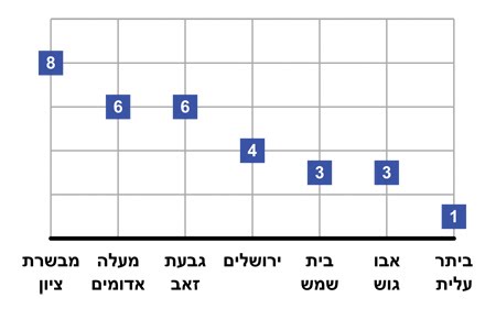כפי שניתן לראות בגרף המצורף, היישובים הסמוכים לירושלים מדורגים באשכולות גבוהים יותר מירושלים, למעט היישובים החרדים והערבים.