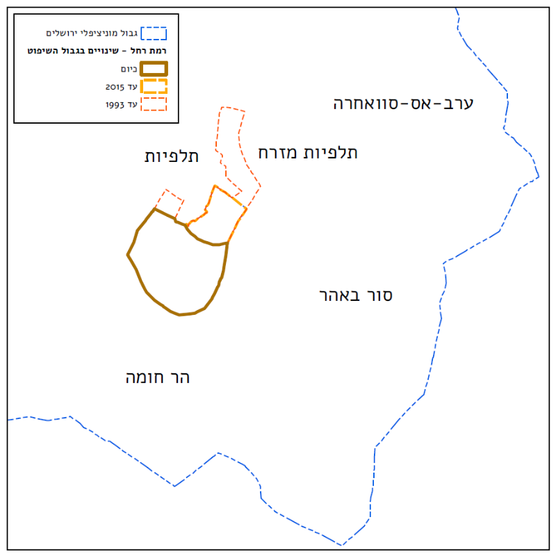 אך מקומה של תכנית ספדי בסיפור הזה אינו רק בתיחום מאבקם של הגופים הירוקים. תכנית ספדי נוצרה על מנת לענות על הצרכים הדמוגרפים של ירושלים. במסגרת קידומה של התכנית ומתוך רצון למילוי מכסת עתודות הקרקע החסרות, החליטה שר הפנים (שהיה גם אז אריה דרעי) בהמלצת ועדת גבולות ב 1993 על תוספת של שטחים ממערב ירושלים: אזור רכס לבן, עמק הארזים והר חרת. בתוך החלטה זו נכנסו גם 320 דונם שהיו בתחומו של קיבוץ רמת רחל. שטח זה נמצא ממזרח לשכונות תלפיות וממערב לשכונת תלפיות מזרח.