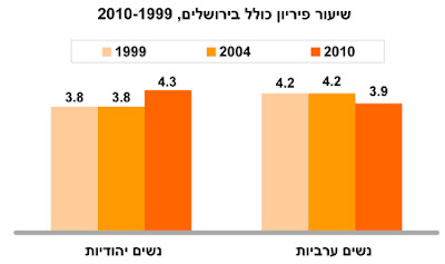 And now for the news: in 2009, for the first time, the fertility rate of Jewish women in Jerusalem (4.3) was higher than the fertility rate of Arab women (3.9) and was even higher than that of Muslim women (3.9).