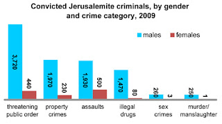 In 2009, 11,550 residents of Jerusalem were convicted of felonies – the equivalent of 1.5% of Jerusalem ’s population. Of the convicted, 1,400 were minors under the age of 17 (12%), and another 19% were young adults, between the ages of 17 and 21.